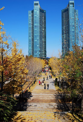Många Korean BBQ-restauranger och barer samlade i några kvarter. Här är det annars affärsverksamhet i skyskrapor, men ofta med caféer och restauranger i de nedre planen.